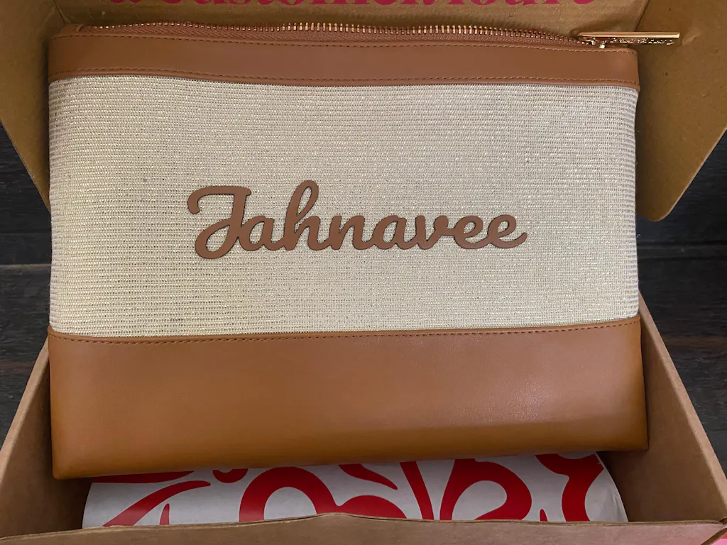 I recently purchased this personalized pouch from theBaeshop as a Rakhi gift for my sister, and it exceeded my expectations! The material feels premium, with a perfect blend of sturdy faux leather and a textured fabric front. It’s spacious enough to hold essentials like makeup, phone, and small accessories, yet compact for easy carrying. The zipper is smooth, and the name detailing adds such a beautiful personal touch. Overall, it’s stylish, practical, and a truly thoughtful gift!