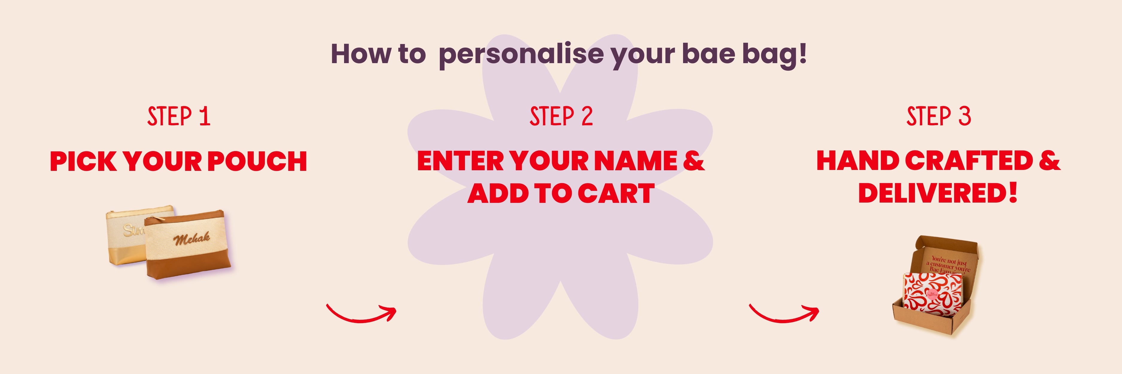 Please enter the name you’d like on your bag. If you have ordered more than 1, separate each name with a comma. Want the names in capital letters? Just mention it in order notes. Avoid emojis and special characters.